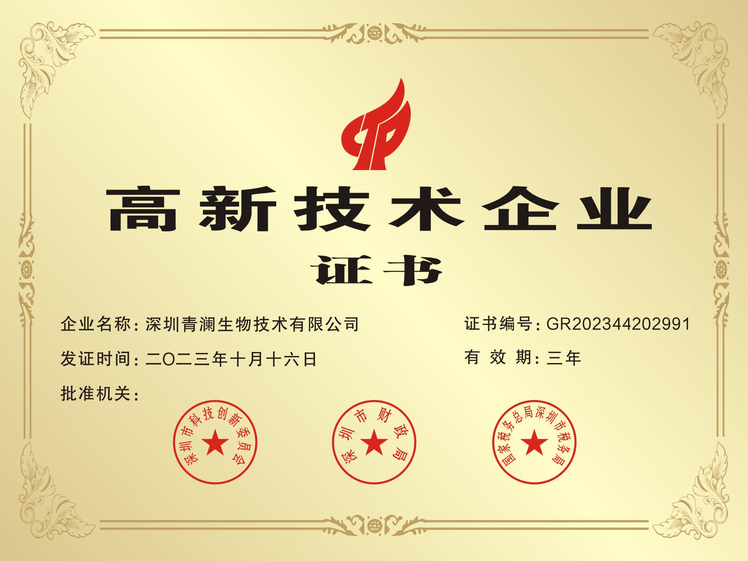 Oct 2023:Recognized as a national high-tech enterprise
