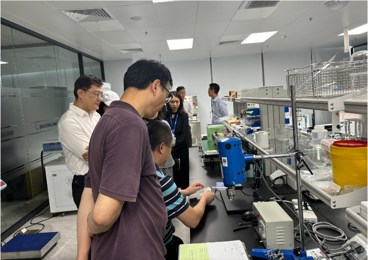 2024年5月27日,國家藥監(jiān)局醫(yī)療器械大灣區(qū)分中心副主任徐良、深圳市醫(yī)協(xié)會會長王斌一行在錦繡科學(xué)園總經(jīng)理楊忠的陪同下蒞臨青瀾生物。調(diào)研組實地考察了青瀾生物辦公和研發(fā)環(huán)境,并與公司管理層舉行了會談。青瀾生物總經(jīng)理江林代表公司熱情接待了調(diào)研組一行。質(zhì)量部總監(jiān)李行友、生產(chǎn)及設(shè)備開發(fā)部經(jīng)理歐陽星、研發(fā)部制劑經(jīng)理洪哲等參加了會議。