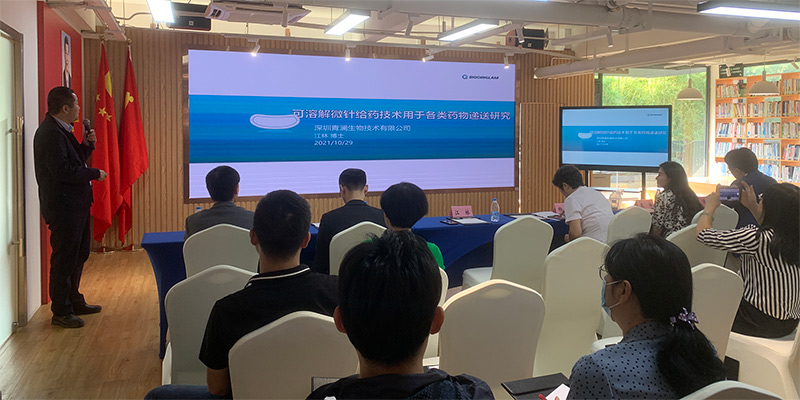 青瀾生物創(chuàng)始人、執(zhí)行董事、總經(jīng)理江林博士就可溶解微針給藥技術(shù)用于各類藥物遞送研究在沙龍上進行了講解: